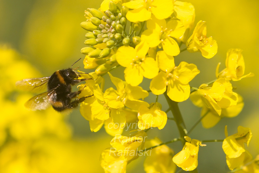 Germany, DEU, Waltrop, 2005Apr23: A bumblebee (Bombus terrestris) on blooming rape-seed.