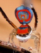 L’actualité scientifique met aujourd’hui en lumière Maratus splendens, araignée qui doit son nom (brillant) aux magnifiques couleurs vives